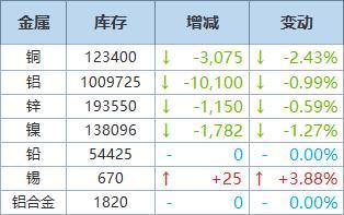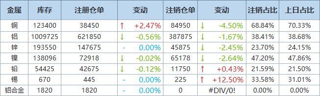 在宏观面多重利空效应下,昨日金属市场重回跌势,近全线收跌,仅伦镍微涨0.13%。其中,铝价因库存再增3.1万吨及俄罗斯将取消铝出口关税的消息引发市场抛售,沪铝收跌5.39%,伦铝收跌4.93%,领跌金属市场。金属价格后续走势如何,让我们结合基本面情况来做具体分析。