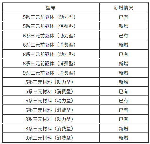 - 三元前驱体:5系消费型、6系消费型、8系消费型、9系消费型