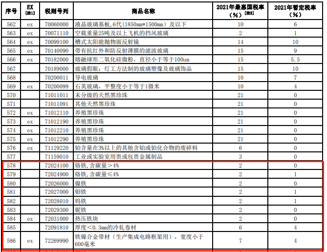 据SMM了解,根据国内产业发展和供需情况变化,对2020年实施的进口暂定税率进行适当调整。为贯彻落实《固体废物污染环境防治法》,2021年1月1日起,相应取消金属废碎料等固体废物进口暂定税率,恢复执行最惠国税率,铁合金相关产品进口税率有所上升。
