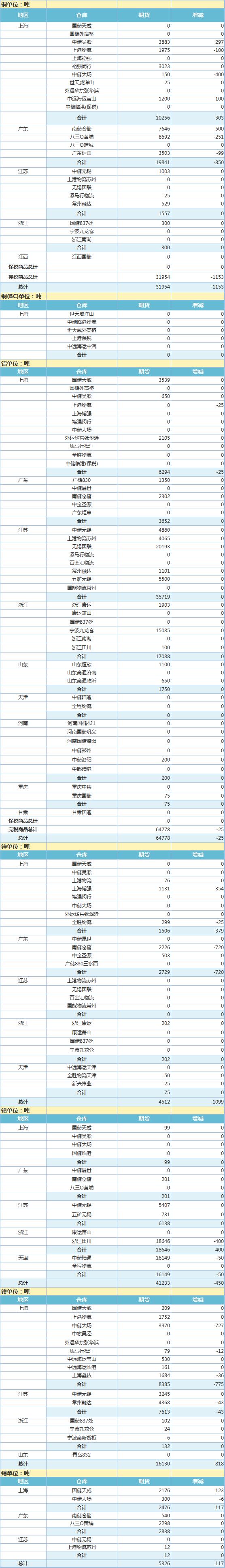 6月29日上海期货交易所金属库存日报