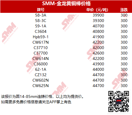 【SMM价格】2024年6月13日金龙黄铜棒价格