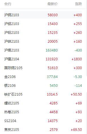 贵金属方面,沪金跌1.38%,沪银跌2.05%,国际现货黄金几乎持稳,交投于1800下方。多头反弹力量薄弱,基本面与技术面都利空金价,金价的任何反弹都可能是空头逢高做空的机会。初请失业金数据表现良好,且民主党继续在无需共和党支持的情况下推进纾困法案,市场对美国未来的经济前景相当看好。