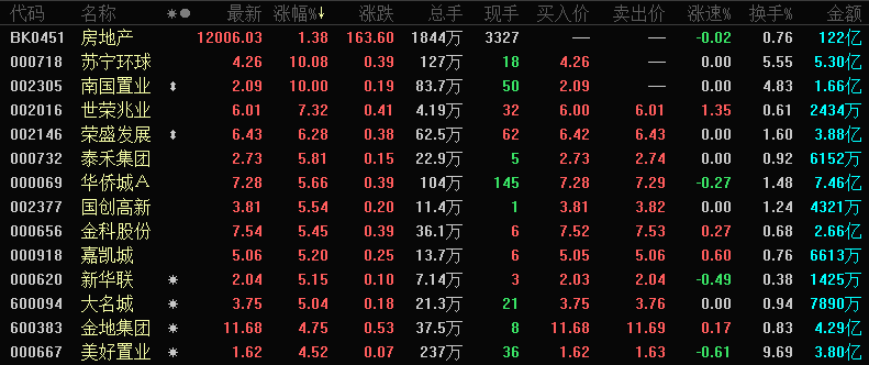 SMM2月5日讯:房地产板块午后走高,苏宁环球、南国置业封板,世荣兆业涨逾7%,荣盛发展涨逾6%,华侨城A、国创高新、金科股份等多股涨逾5%。