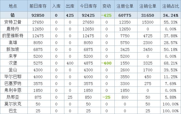 》查看更多金属库存信息