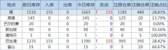 各具体仓库库存变化情况