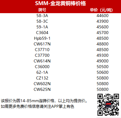 【SMM价格】2023年10月27日金龙黄铜棒价格
