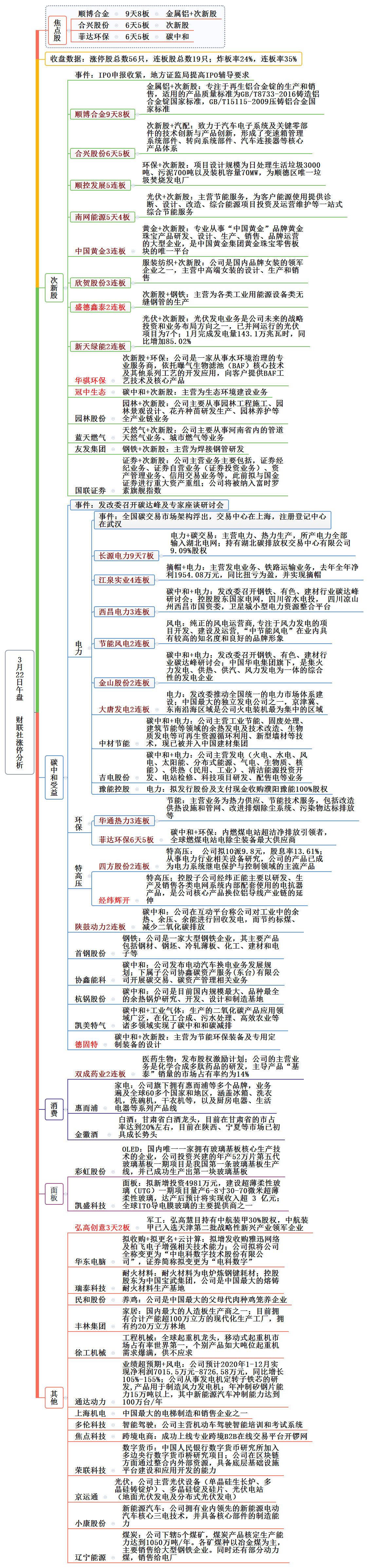 总之,市场短线情绪表现活跃,题材轮番走强,碳中和主题更是显示出了强大生命力,叠加次新属性的个股目前更受资金追捧。碳中和主题的次新股中,顺博合金、顺控发展、南网能源这3个高位次新股继续连板晋级。目前次新板块中涨停股多为叠加碳中和的概念股,显然还没发展到纯次新阶段来收尾,那么次新板块或还在上升期。
