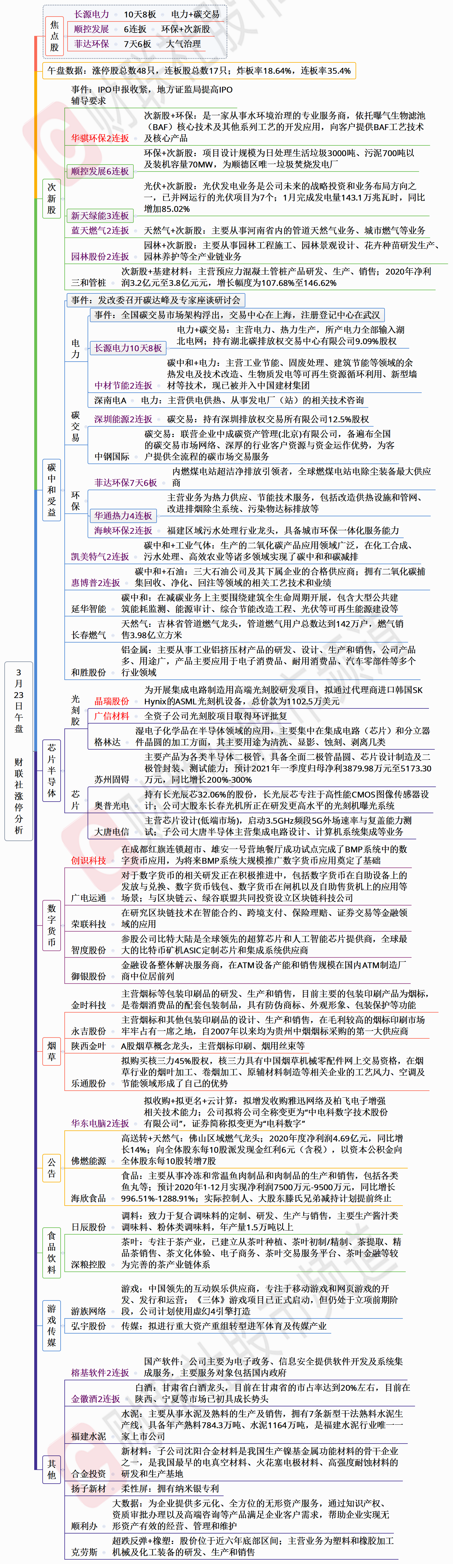 总之,碳中和主题如期分化,资金抱团前排高位股,后排股亏钱效应扩大。光刻胶、烟草、数字货币等板块虽有低位优势,但没能与指数共振,持续性有待观察。