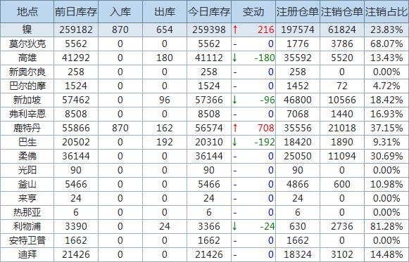 4月6日LME金属库存及注销仓单数据