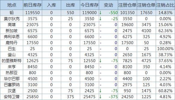 》查看更多金属库存信息