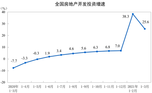 1—3月份,全国房地产开发投资27576亿元,同比增长25.6%;比2019年1—3月份增长15.9%,两年平均增长7.6%。其中,住宅投资20624亿元,增长28.8%。