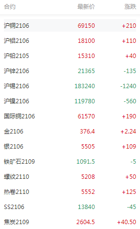 SMM4月22日讯:周四有色金属涨跌互现,铜铝高位震荡,沪铅午后逐步走强。截止日间收盘,沪铜涨0.3%,沪铝涨0.61%,沪锌跌0.63%,沪铅涨0.26%,沪镍跌0.47%,沪锡跌0.67%,国际铜涨0.31%。