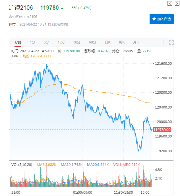今日沪镍期价一路回落,盘中一度跌至119060元/吨,随后临近日间收盘略有收复部分失地,终报于119780元/吨,跌幅达0.47%,失守12万关口。现货方面,报价几乎于昨日持平,早市交投情况平淡,成交量有限。