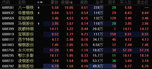 SMM4月23日讯:午后钢铁板块短线拉升,八一钢铁涨停,华菱钢铁、安阳钢铁、马钢股份、抚顺特钢跟涨。同时,期货市场,受本周邯郸、唐山丰润区钢厂集中限产停产影响,螺纹、热卷大幅拉升,期价再创新高。