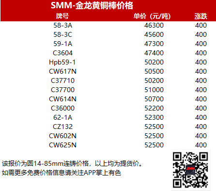 【SMM价格】2023年10月27日金龙黄铜棒价格