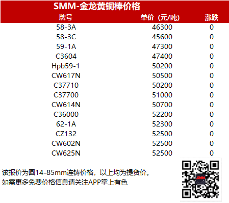 【SMM价格】2023年10月27日金龙黄铜棒价格