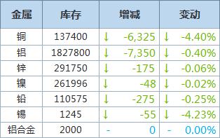 以下为5月4日伦敦金属交易所(LME)库存变化情况(单位:吨)