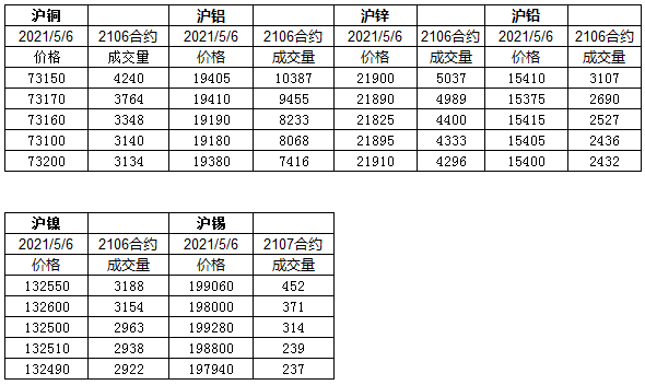 2021年5月6日上期所金属主力市况