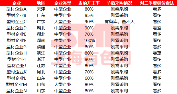 采购上,大多数企业选择刚需采购,担忧后期铝价不稳不敢轻易备库,而极少数企业存在备库情况,理由是越观望铝价越涨,不如早点下手;