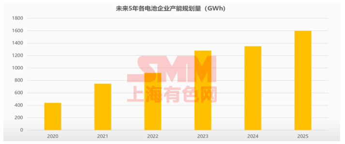 未来5年各企业产能扩张迅速,主要电池企业的新增规划将超过1000GWh。