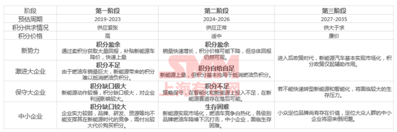 积分政策对纯新能源车企利好极大,而燃油车企普遍具有CAFC负积分包袱拖累,将面临较大经营压力,尤其是在智能化和新能源方向的保守型企业和综合实力较弱的中小车企。