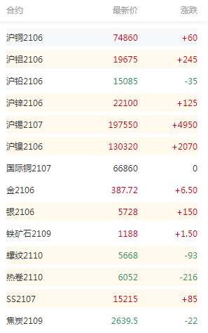 贵金属方面,沪金涨近1.7%,沪银涨近2.8%,国际黄金期货周五延续升势,创2月以来最高收位,受美元和美国公债收益率下跌提振,此前数据显示美国4月零售销售意外持平。分析人士指出,需要美元和实质收益率保持支撑,金价才能在近期上涨。