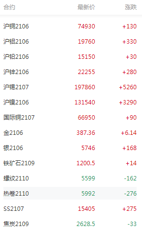 铝方面,午前沪铝2106合约迅速拉涨,沪铝指数增仓草果38000手,铝价重心再度向20000元/吨关口靠拢,一方面周一铝锭库存对现货市场形成支撑,另一方面,云南限电信息再度引发多头信心。早间华东现货成交集中19700-19730元/吨,对06合约实时升贴水为平水附近,较上周五持平,现货升贴水继续维持坚挺。