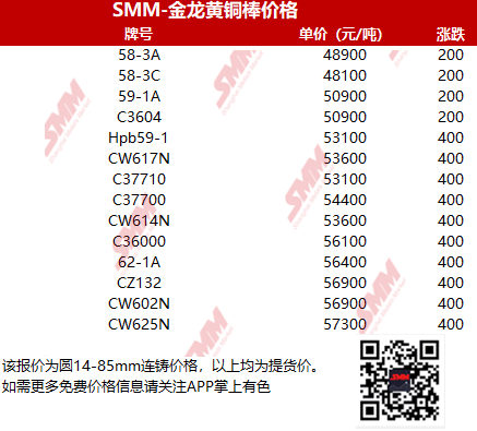 【SMM价格】2023年6月9日金龙黄铜棒价格