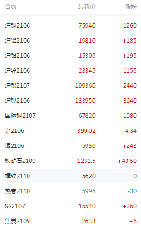 贵金属方面,沪金涨1.13%,沪银涨4.27%。贵金属延续涨势,道明证券表示:“随着投资者对通胀发出警报,机构对贵金属的兴趣再次上升。经过数月的资金外流,投机性兴趣的回归最终可能引发一场突破。”道明证券预计,这段高通胀时期将被证明是暂时的,但围绕通胀路径仍存在大量的不确定性。尽管如此,考虑到黄金仍是对冲通胀的最有力工具之一,该行认为黄金存在巨大的上行空间。