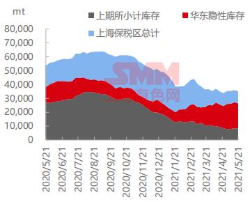 截至5月20日,SMM统计国内电解铝社会库存(含SHFE仓单)102万吨,周度降库4.1万吨,巩义、南海、上海、无锡、天津及临沂地区均表现去库。近期到货量较前期基本持稳,亦伴随着电解铝厂旺季铸锭比例的下降,预计短期入库不会有太大压力;出库方面,受铝价回调带动,现货市场中间商及下游接货力度较前一周继续加强,帮助国内电解铝顺畅去库,预计下周在旺季和铝价回调的双重支撑下,铝锭社会库存降幅将在3-5万吨水平。