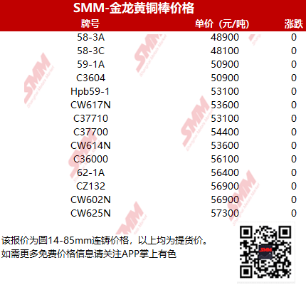 【SMM价格】2025年5月13日金龙黄铜棒价格