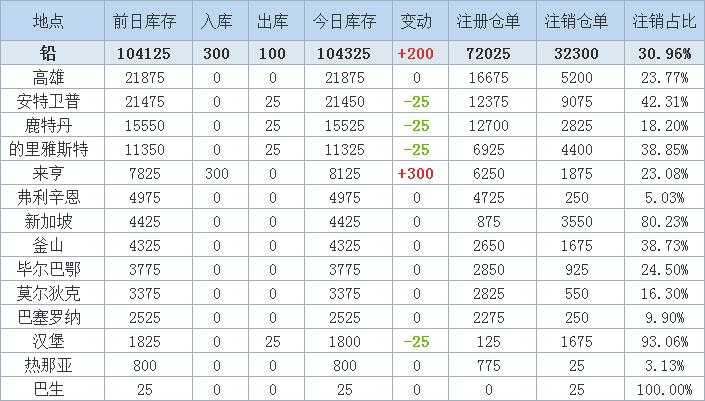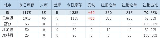 》查看更多金属库存信息