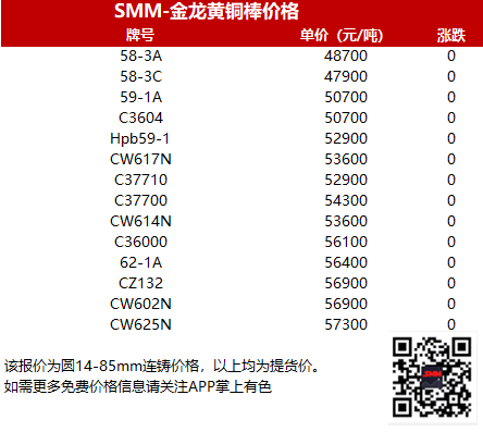 【SMM价格】2024年1月23日金龙黄铜棒价格