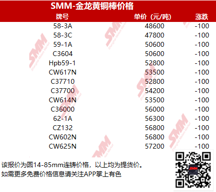 【SMM价格】2025年6月6日金龙黄铜棒价格