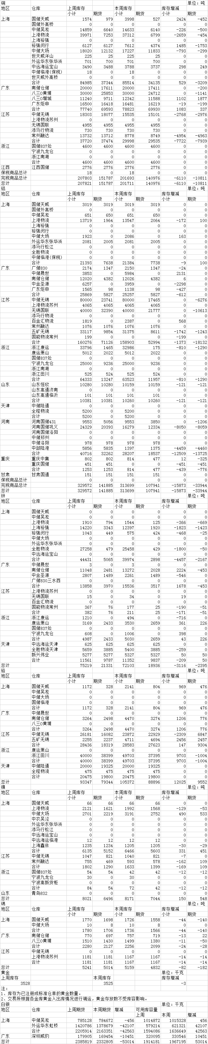 2021年6月4日上期所库存周报