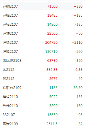 贵金属方面,沪金涨1.68%,沪银涨0.87%,国际金价周一持稳,受美元回落以及美债收益率下滑支撑。之前美国公布的非农就业报告弱于预期,缓解了投资者对收紧货币政策的疑虑。据报道,美国财政部长耶伦表示,总统拜登的4万亿美元支出计划对美国来说是好事,即使它推动通货膨胀率上升并导致利率上升。