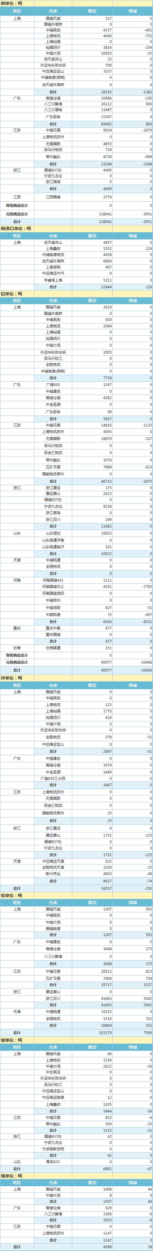 6月9日上海期货交易所金属库存日报