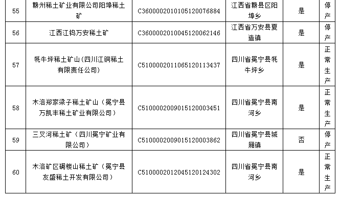 按照《工业和信息化部办公厅关于建立稀土矿山、冶炼分离企业定期公示制度的通知》(工信厅原〔2018〕62号)文件要求,现公示如下: