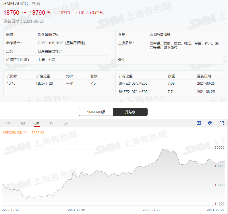 今年年初以来,随着全球疫情好转,铝下游消费需求增长。而且国内供应端先后受到内蒙限产、云南限电等因素影响下,供应增量有限。加之宽松资金面带动下铝价大幅上涨。SMMA00铝价从年初最低14720元/吨一路上涨并在5月上旬突破20000元/吨,至今上半年铝价涨幅接近36%!