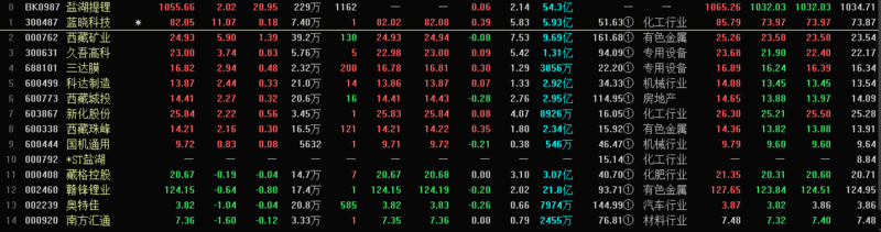 SMM 6月28日消息:今日早间,盐湖提锂概念股开盘强势走高,蓝晓科技一度涨逾15%,西藏矿业涨超6%,久吾高科、科达制造等多股跟涨。截止收盘,蓝晓科技涨幅达13.36%,西藏矿业涨达5.1%。