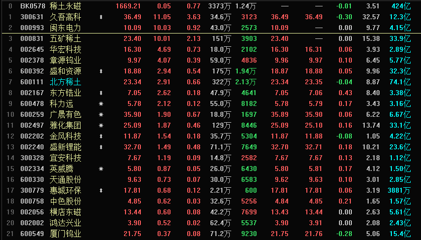 浙商证券指出,随着全球新能源汽车需求的确定性高增长,到2025年全球新能源汽车消耗的氧化镨钕量将达到目前全球供应量的30%,稀土的核心品种氧化镨钕将为行业带来绝佳的利润弹性,且增长性确定,稀土作为新能源汽车上游资源品,行业龙头目前20倍左右的估值,在新能源产业链中极具估值优势。