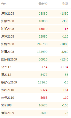 SMM7月7日讯:昨日外盘金属市场多数下跌,伦铜周二从约三周高位回落,此前美元反弹,油价下滑。铜价此前已连续两个交易日上涨,因在油价飙升至多年高点之际,投资者买入铜以对冲通胀风险。但油价回落,而美元指数由跌转升,令以美元计价的大宗商品对其他货币的买家来说更加昂贵。今日LME金属市场全线飘红,截止上午9时30分左右,伦锡涨近0.4%,伦铜、伦铅涨近0.3%,伦铝、伦镍涨近0.2%,伦锌涨近0.1%。国内方面多数飘绿,国际铜、沪铜跌近2%,沪铝跌近1.7%,沪铅涨近0.1%,沪锌跌近0.5%,沪镍跌近2.4%,沪锡跌近0.4%。
