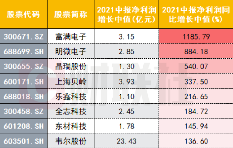 中报数据显示,沪深30家已披露业绩预告的涉及MCU制造的上市公司中,八成业绩均大幅上升。其中综合型芯片一体化制造企业富满电子上半年净利润达3.0-3.3亿元,同比最高增长将达1237%,明微电子和晶瑞股份业绩增长也均超过500%。
