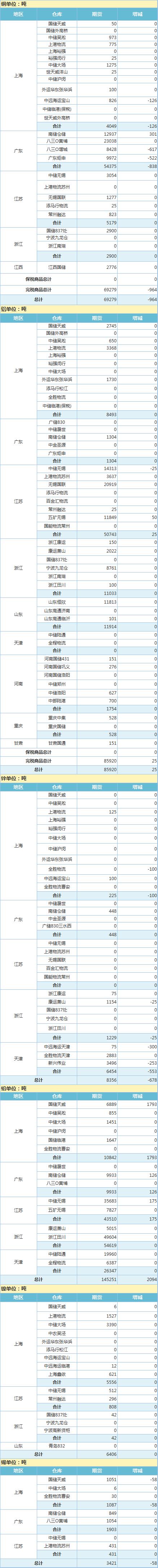 11月20日上海期货交易所金属库存日报