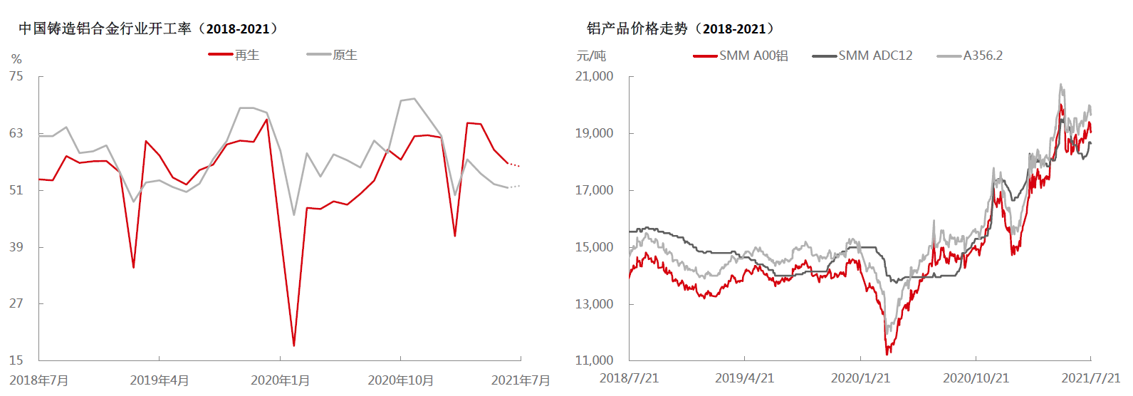再生铝合金:7-8月汽车传统消费淡季再生铝开工不旺,废铝价格居高不下再生铝合金成本压力较大。
