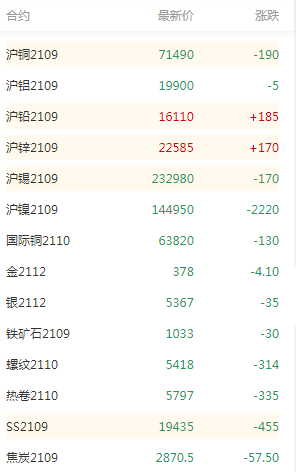 SMM8月2日讯:上周五外盘金属多数收跌,其中期铜在近期急速拉升后出现技术性回调,消息面,全球最大铜矿智利Escondida铜矿的工人投票决定进行罢工,但资方表示将要求政府进行调解,关注事件后续进展对矿端供应的影响。今日LME金属市场涨跌互现,截止上午9时40分左右,伦铜涨近0.4%,伦铝涨近0.6%,伦铅、伦锌涨近0.2%,伦镍跌近0.4%,伦锡跌近0.9%。国内方面,有色金属互有涨跌,国际铜、沪铜跌近0.2%,沪铝涨近0.1%,沪铅涨近1.2%,沪锌涨近0.9%,沪镍跌近1.5%,沪锡跌近0.1%。