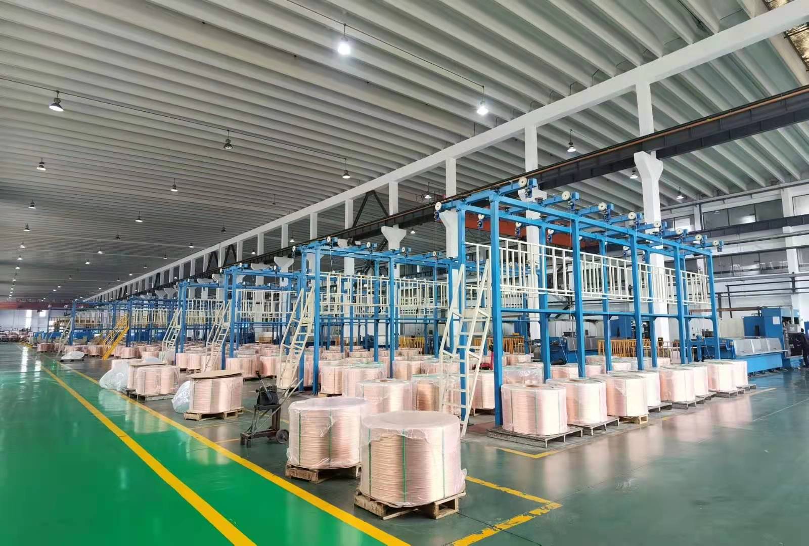 公司主要生产生产0.05mm~3.00mm各类电缆用型号线、裸铜单丝、并丝、绞线。年生产近4万多吨,年产值20亿以上。公司根据国标、国内标准制定了严格的生产工艺、和质量管理体系。拥有先进的生产设备,公司斥巨资引进意大利翡杰科双头拉丝生产线和德国尼霍夫多头拉丝绞线生产线。目前公司有大拉机3台,中拉机8台,复绕机12台,绞线机70台,小拉机110台,多头拉丝机10台。
