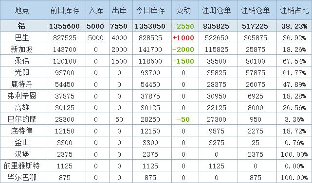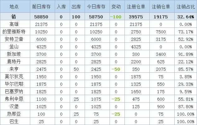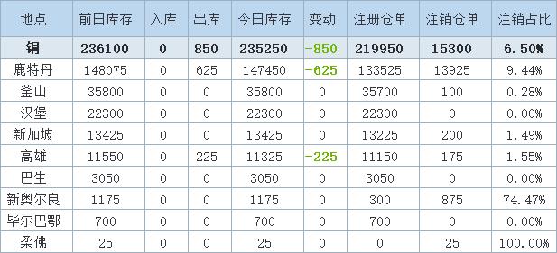 8月6日LME金属库存及注销仓单数据