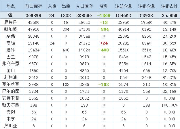 》查看更多金属库存信息