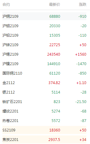 SMM8月18日讯:今日LME金属市场全线飘红,截止上午9时30分左右,伦铜涨近0.8%,伦铝涨近0.9%,伦铅涨近0.4%,伦锌、伦镍涨近0.5%,伦锡涨近0.3%。国内方面,国际铜、沪铜跌近1.5%,沪铝跌近0.1%,沪铅跌近0.7%,沪锌涨近0.2%,沪镍跌近1%,沪锡涨近0.6%。黑色系方面,螺纹跌近1.4%,热卷跌近1.6%,焦煤涨近2.6%,焦炭涨近1.2%,铁矿跌近2.5%,不锈钢涨近0.3%,上期原油跌近0.9%,沪金涨近0.3%,沪银跌近0.6%。